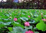 東洋一といわれる蓮が高田公園の外堀を埋め尽くし、幽玄の世界が広がる。 茶会や句会などが開かれる。 |